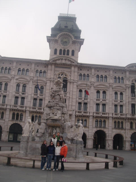 Csoportkép a velencei mintára épült trieszti főtéren.