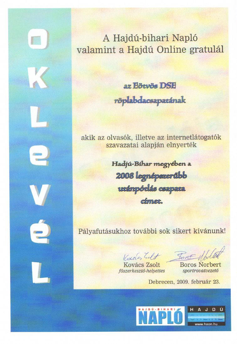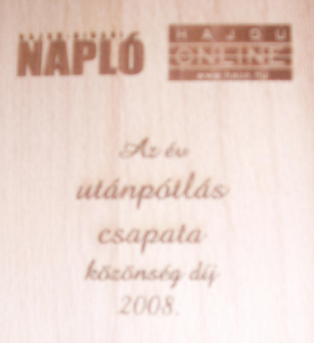 "Az év utánpótlás csapata 2008." című díjat és az oklevelet vehettünk át.