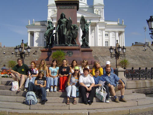 Pihenő Helsinkiben, a Szent Miklós székesegyház impozáns lépcsősora előtt.