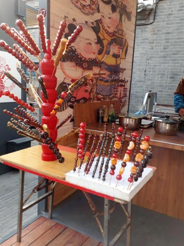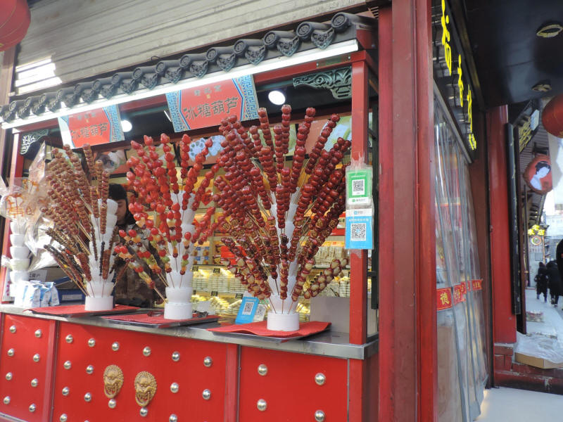 We saw a kind of chinese sweat in a lot of place we were: apple covered with sugar. For example in front of that shopping mall where we had our dinner.