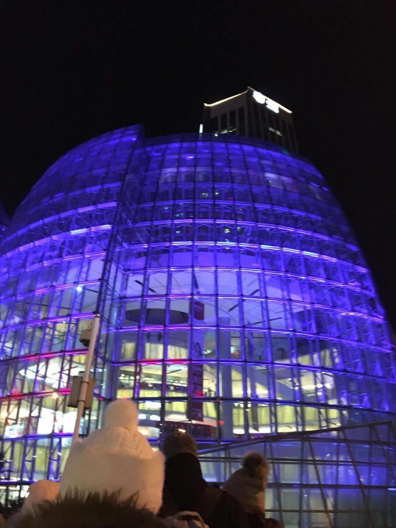 Sok helyen láttunk almából készült cukorral bevont édességet. Például az előtt a Plaza előtt is, ahol vacsoránkat elfogyasztottuk.
