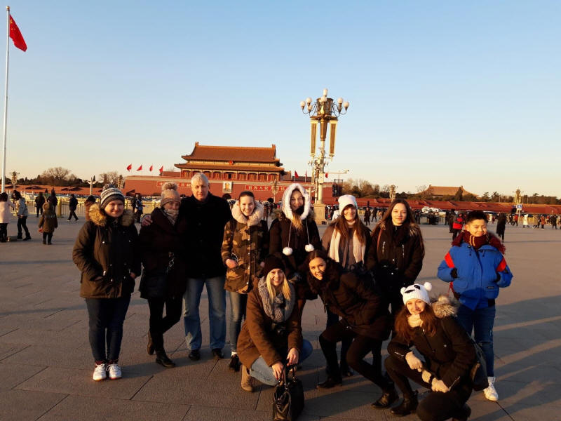 A Mennyei béke tere vagy Tienanmen tér. 440 000 m²-es területével a világ egyik legnagyobb tere.