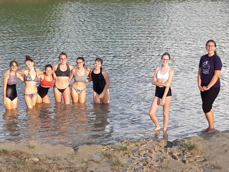 Ludason, a szállásunkhoz nagyon közel egy új tavat létesítettek, amelyet a lányok mindjárt ki is próbáltak.