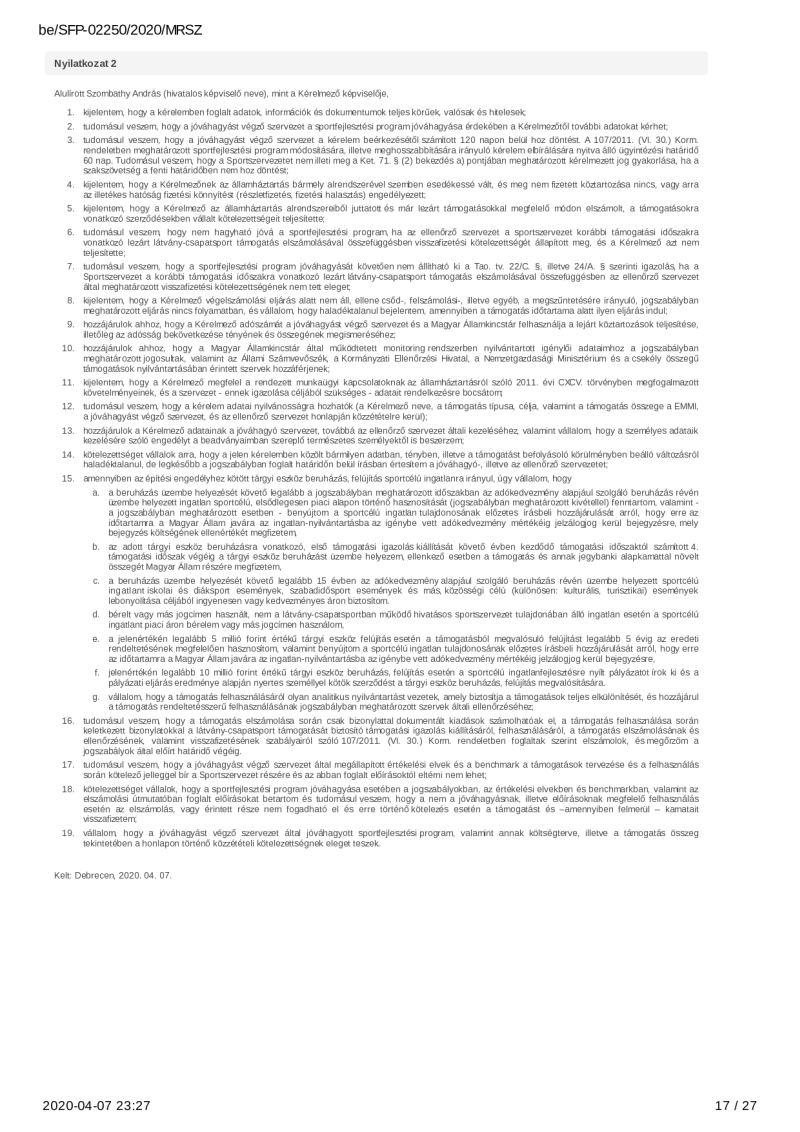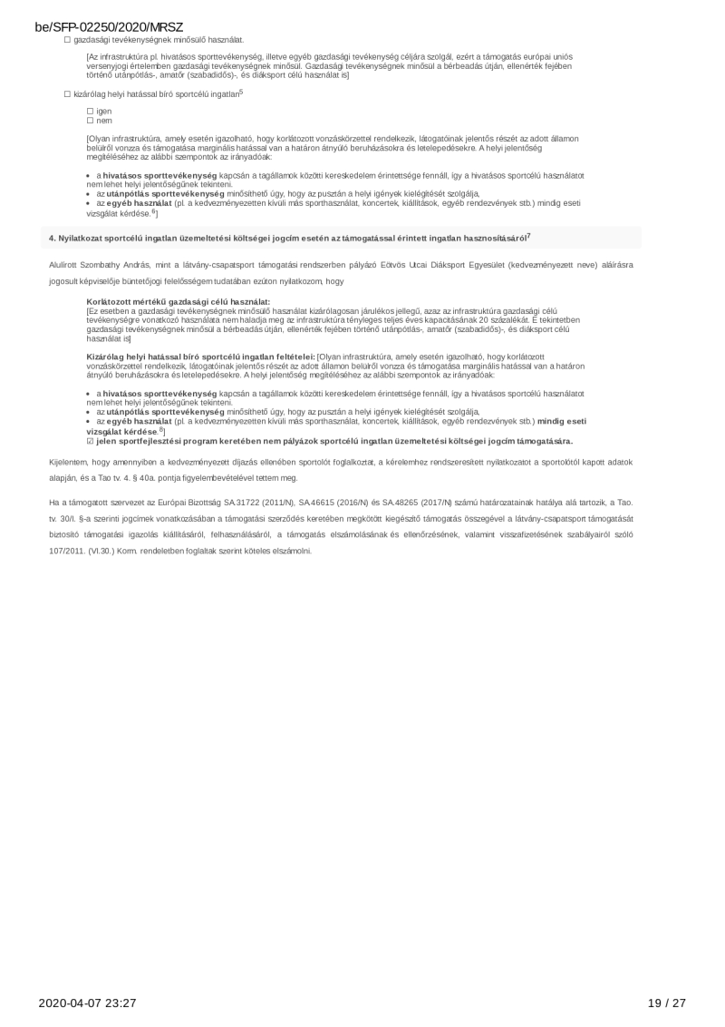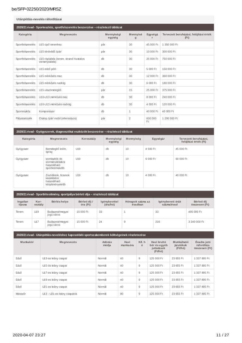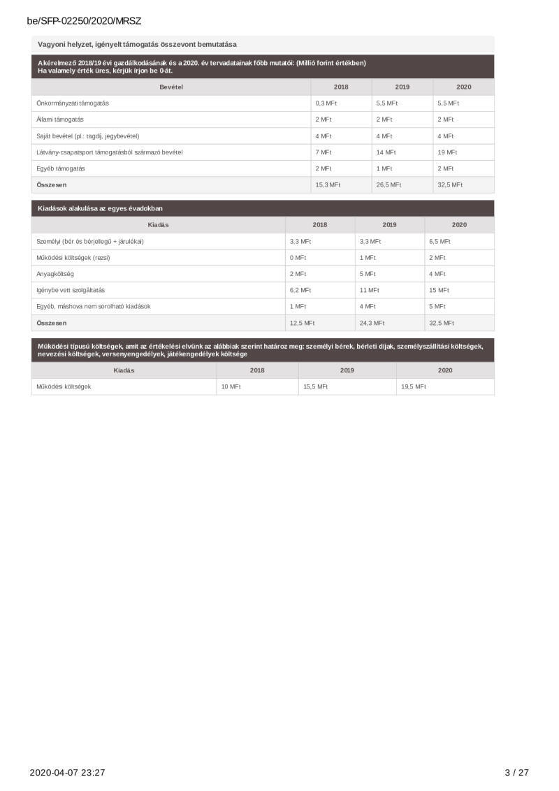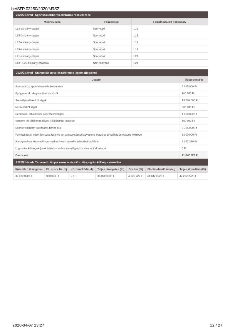 2020. évi sportágfejlesztési program