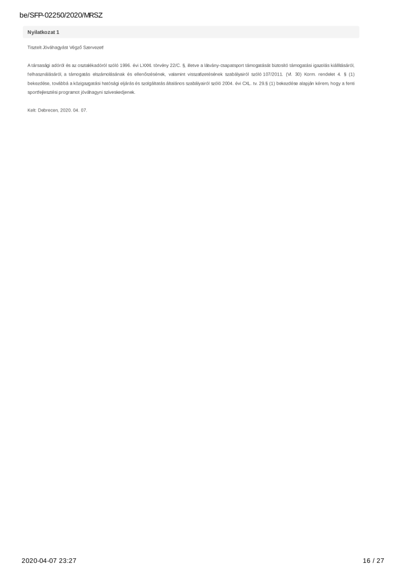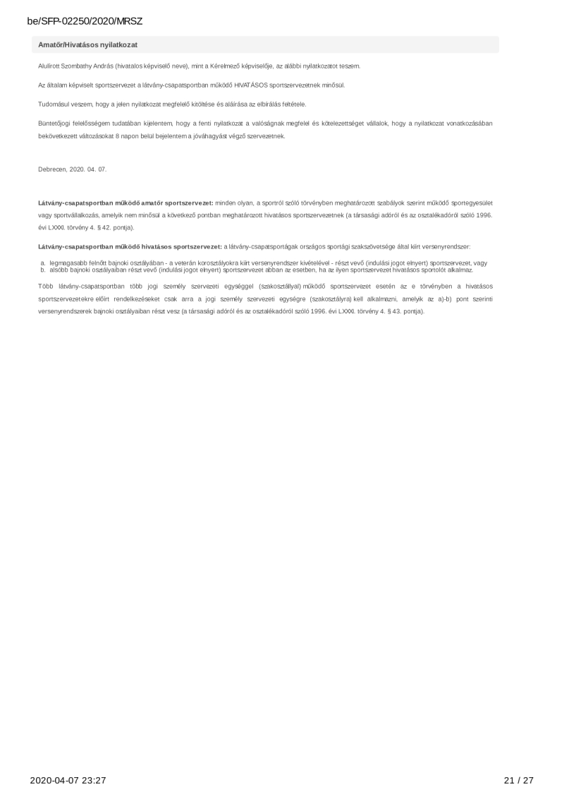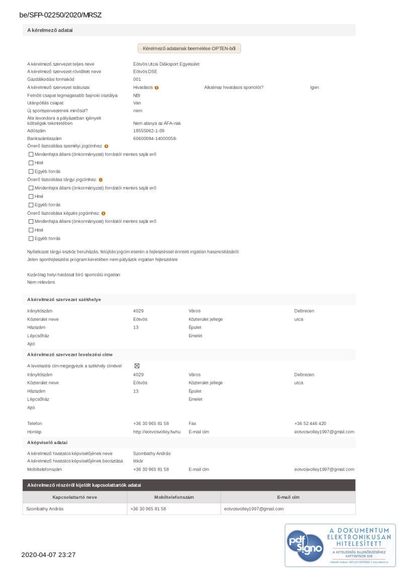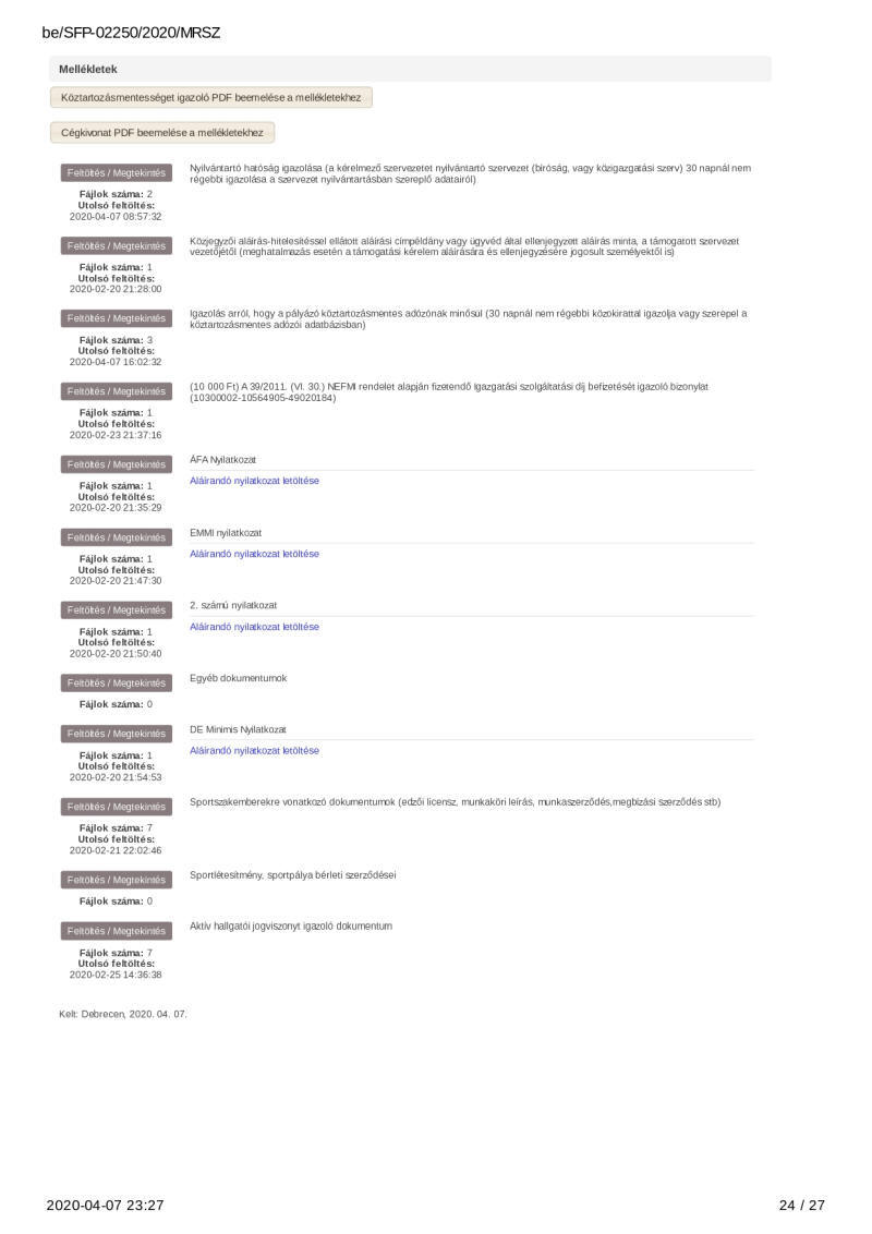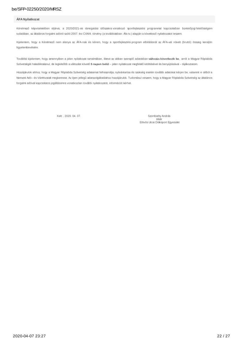 2020. évi sportágfejlesztési program