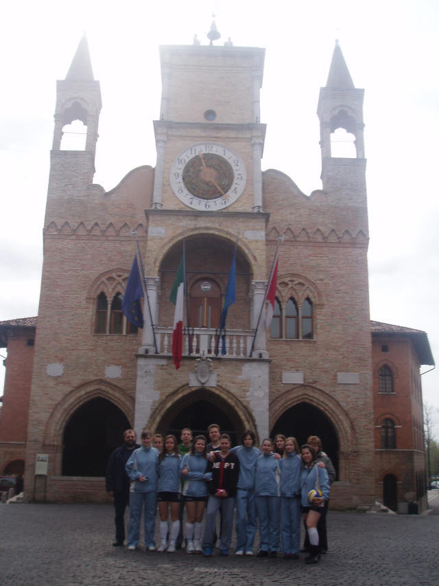Csoportkép Pordenone sétálóutcáján, a városháza előtt.