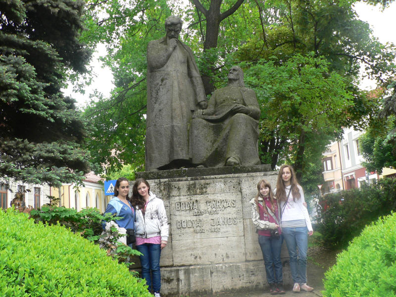 Négy debreceni "bolyais" a két Bolyai szobránál.