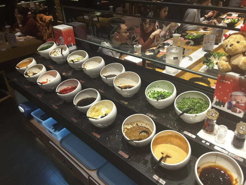 Este érkeztünk Tiencsinbe. Egy érdekes étterembe kalauzoltak vendéglátóink. Egy választott leves-alapba nyers húsokat, zöldségeket, halakat, rákokat lehetett választani, majd az előttünk megfőtt levesből pálcikával kipecázni őket és elfogyasztani.