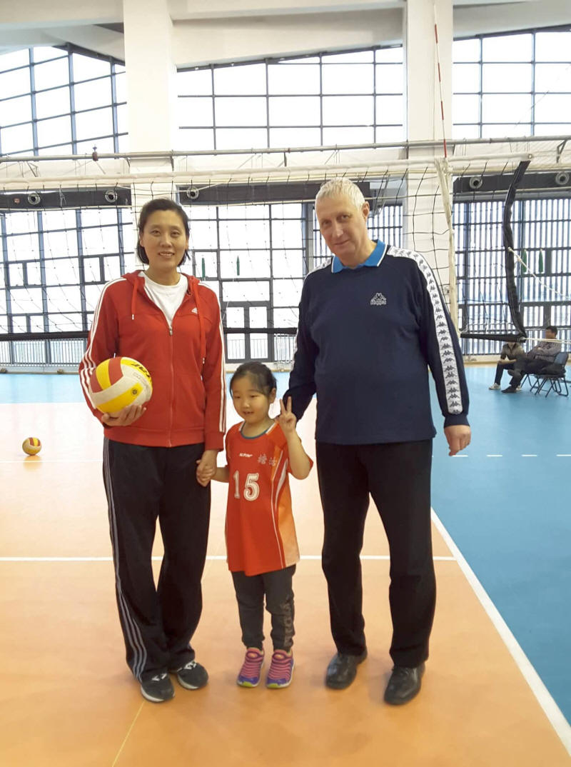 This university gives a lot of players from year to year to the national volleyball team of China. In the picture you can see Yu Jin who was a member of the national team of China many times, Olympic player; her daughter and the secretary of our Association.