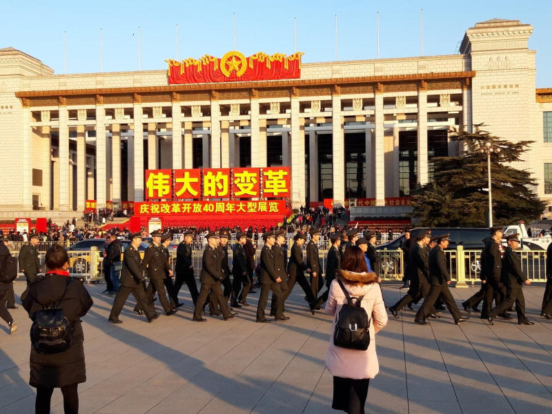 A Mennyei béke tere vagy Tienanmen tér. 440 000 m²-es területével a világ egyik legnagyobb tere.