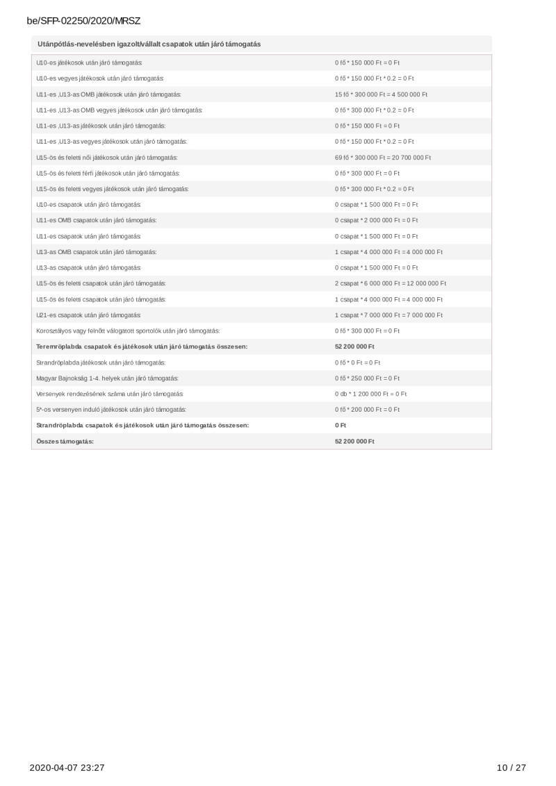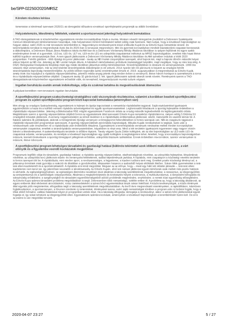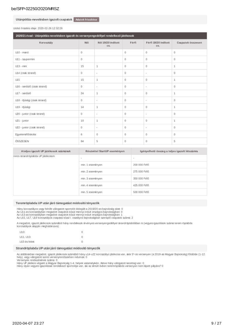 2020. évi sportágfejlesztési program