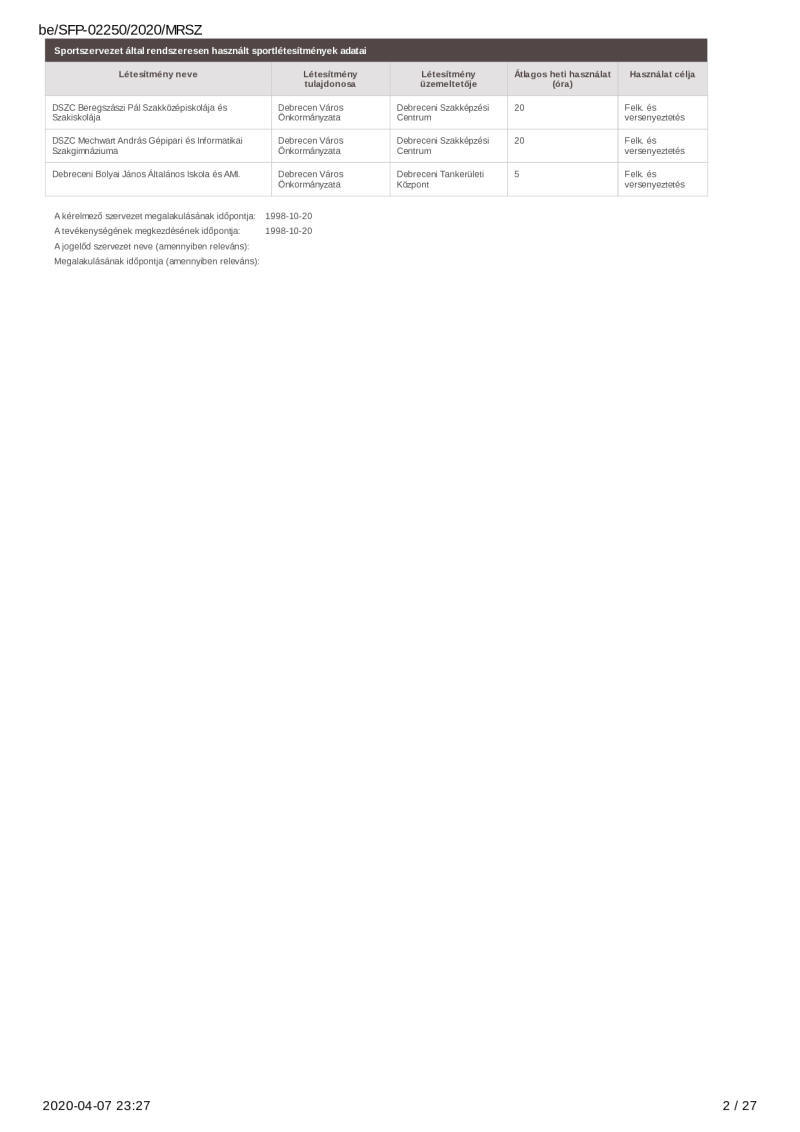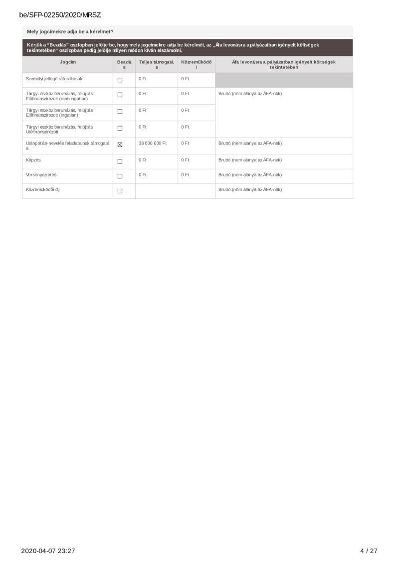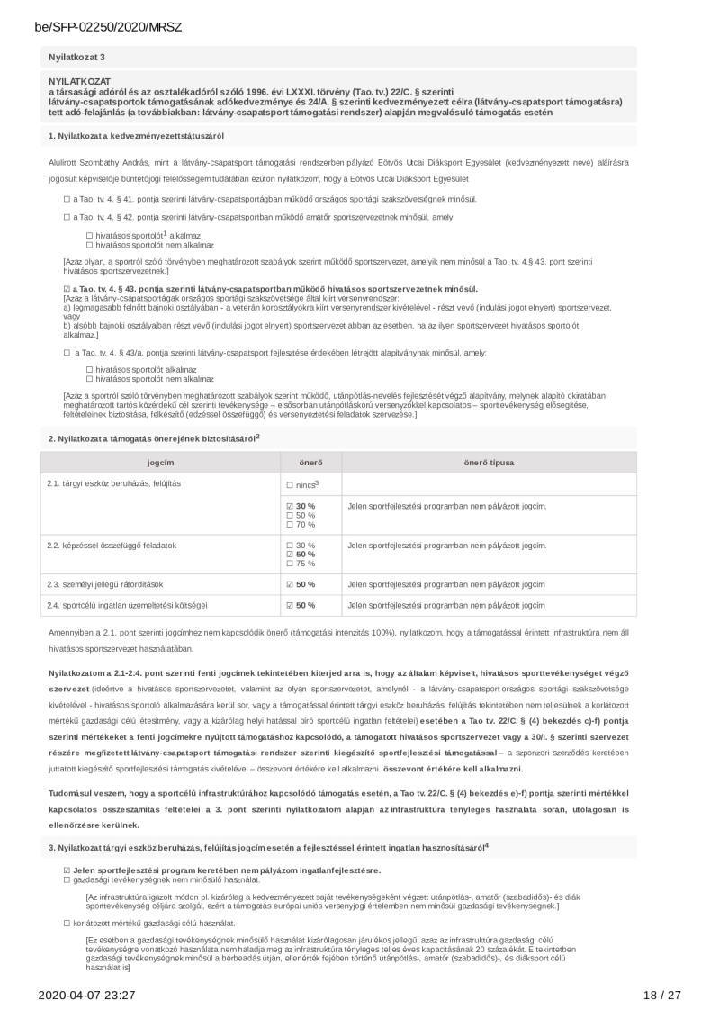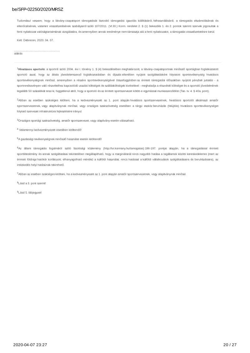 2020. évi sportágfejlesztési program